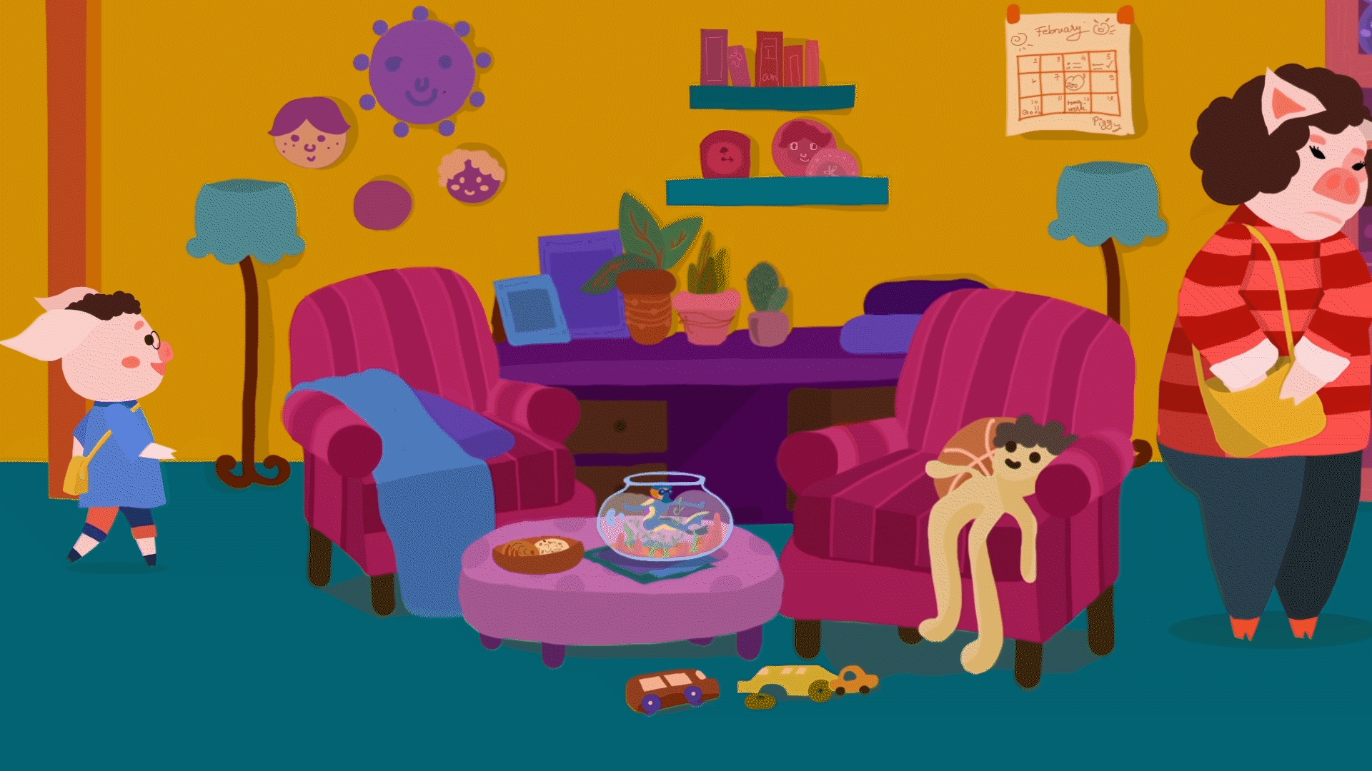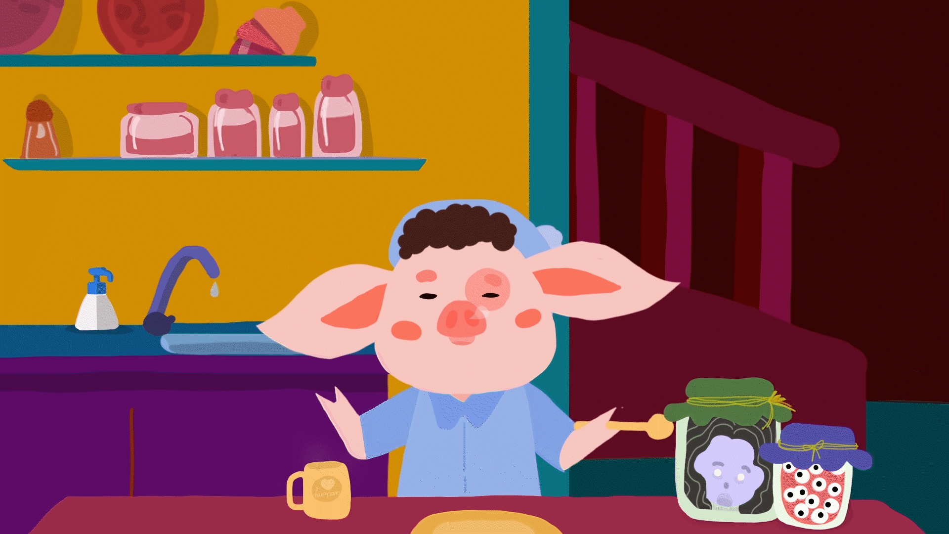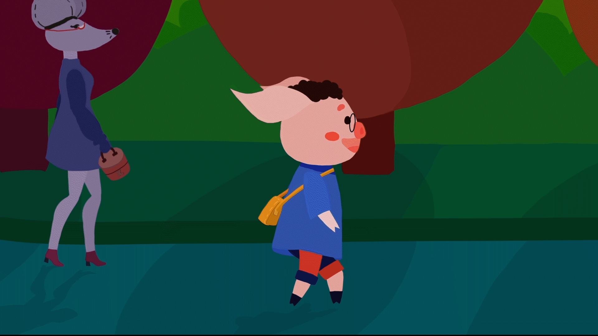 The main character - Piggy lives in a world where animals take human roles and many thoughts start to appear.